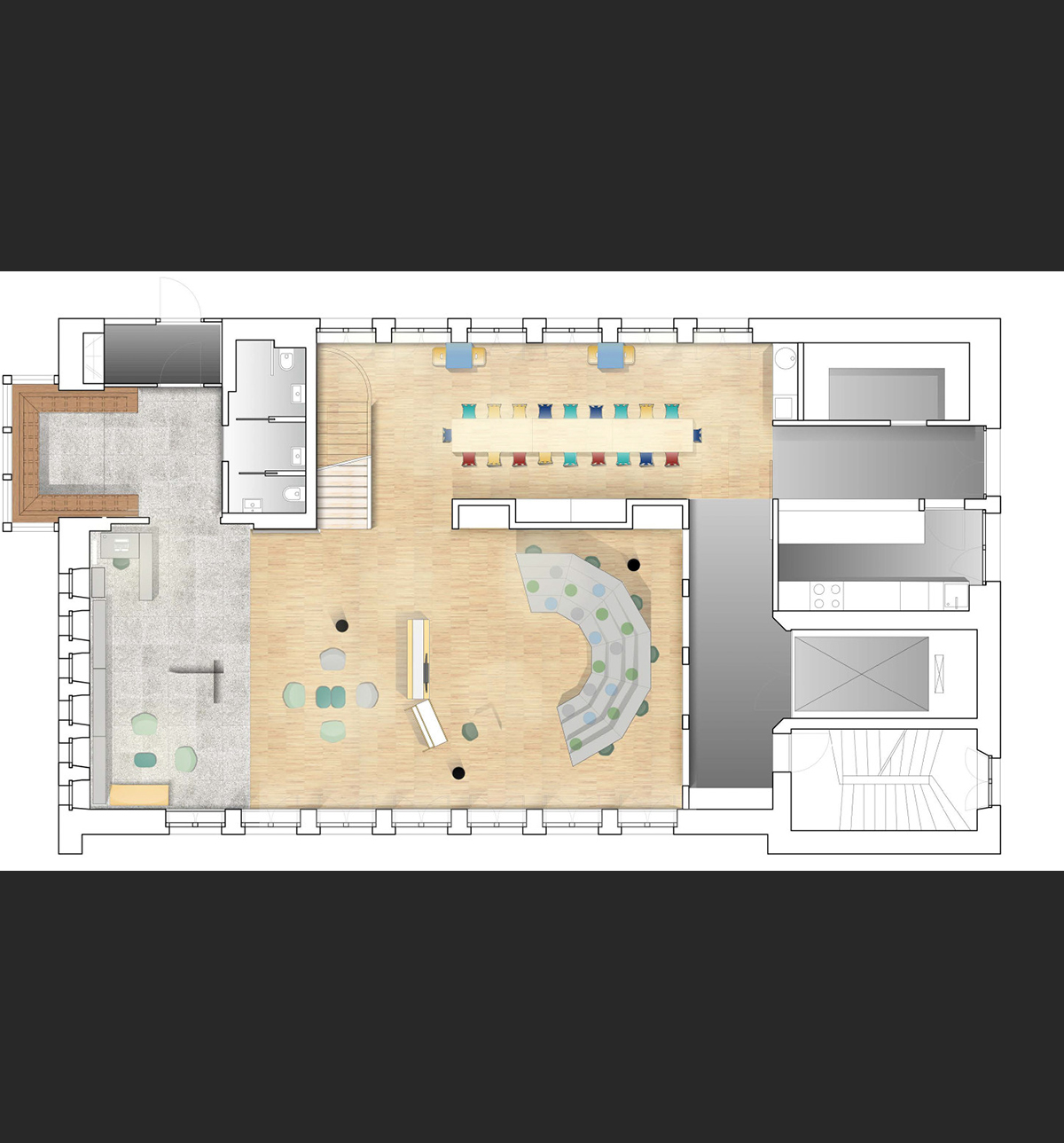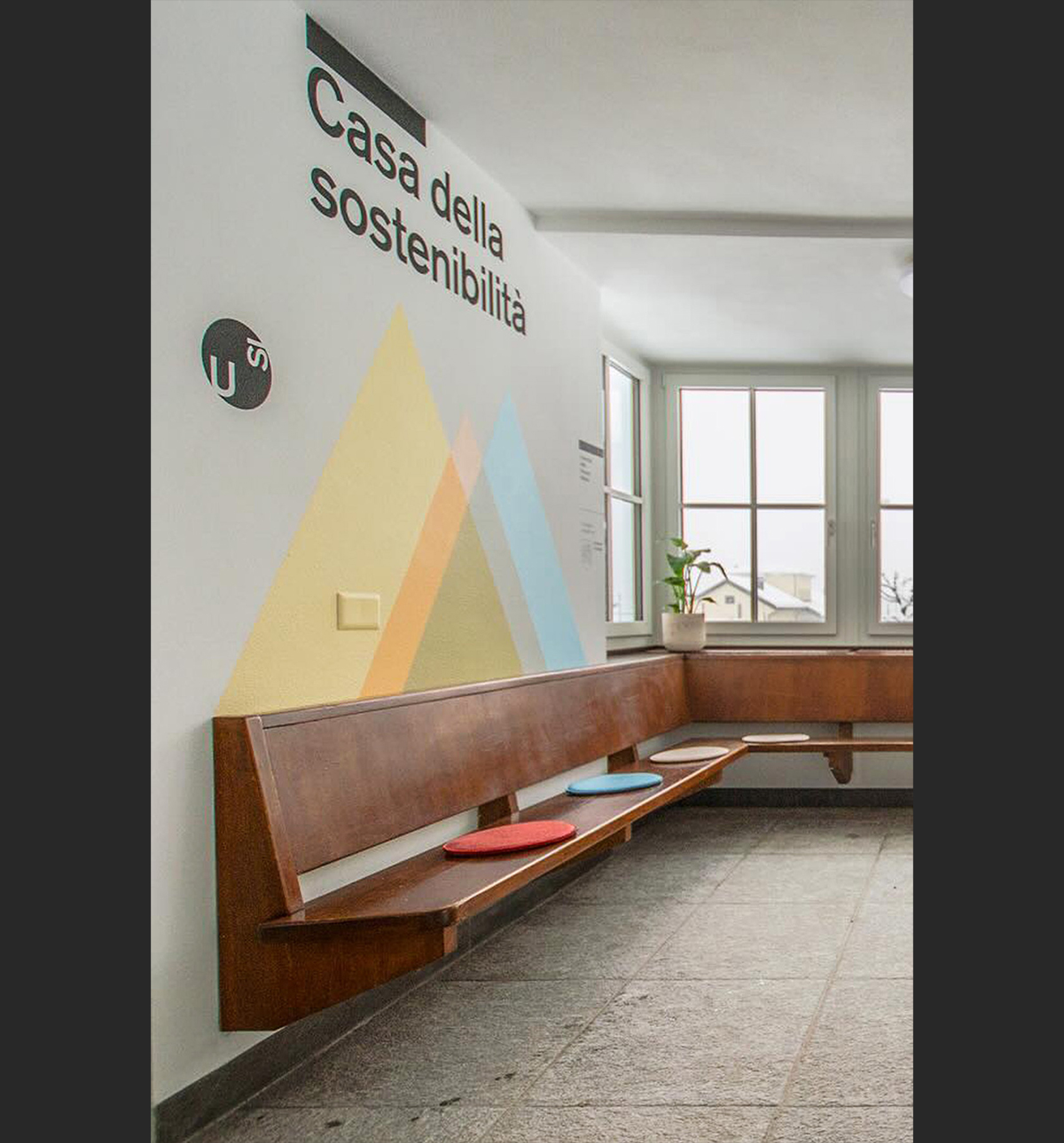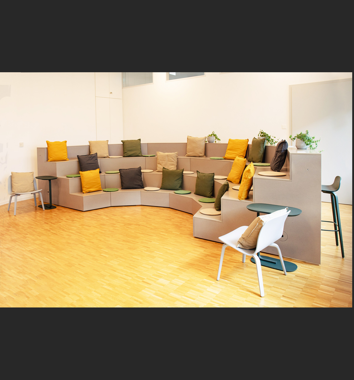 Sviluppo del concetto degli interni di un nuovo spazio culturale di formazione sulla sostenibilità.